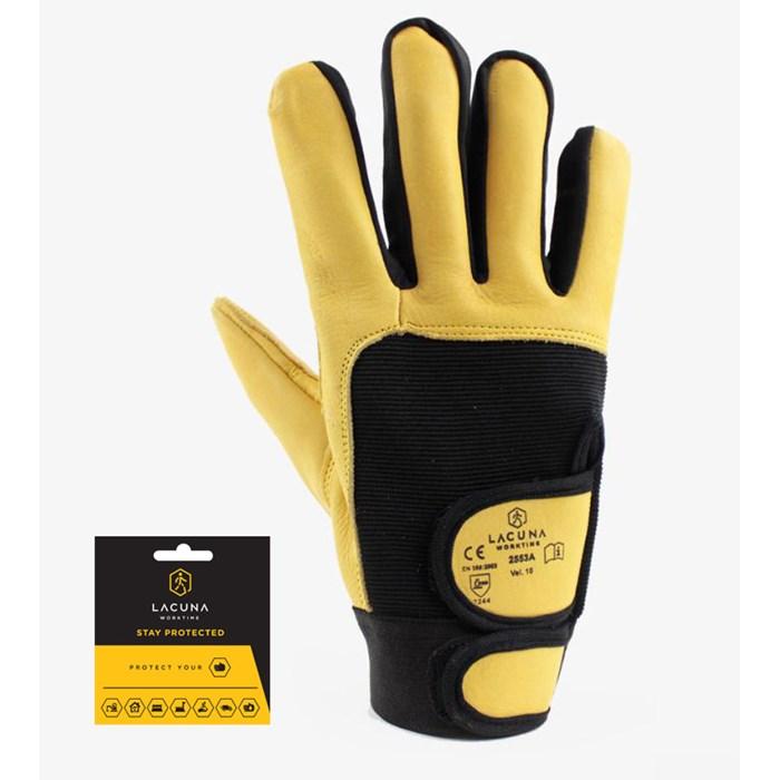 - Antivibracijske usnjene rokavice z ojačitvijo na dlani, idealne za mehanska dela. Dodatne blazinice na dlani ščitijo roke pred tresljaji in so idealne za delo s stroji, ki vibrirajo. Elastična manšeta za dodatno udobje pri nošenju in izjemno dobro prileganje zaradi anatomske oblike, ki sledi obliki roke.