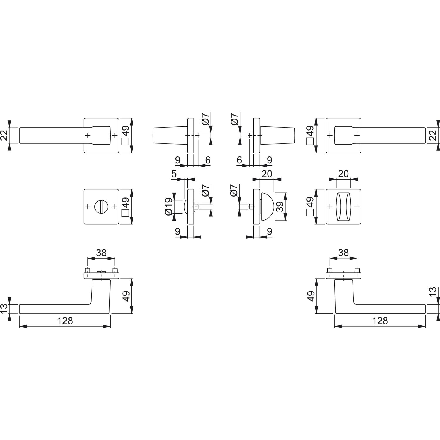 - Dimenzije rozete: 49 x 49 x 9 mm
