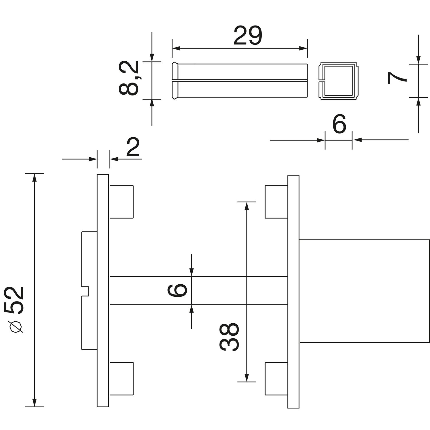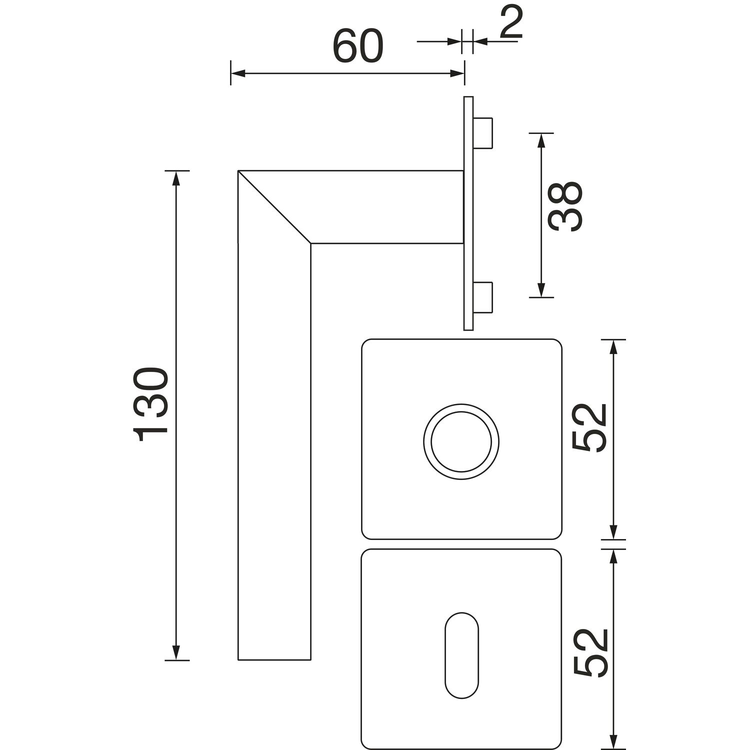 - Dimenzije rozete: 52 x 52 x 2 mm