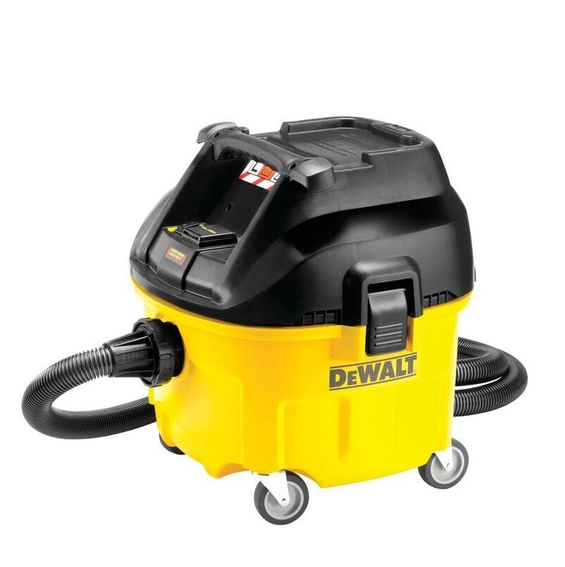DeWalt DWV901L industrijski usisavač 1400 W – spremnik 30 L, klasa filtracije L, automatsko čišćenje filtera i utičnica za električne alate. Profesionalni usisavač za građevinu i renovacije.