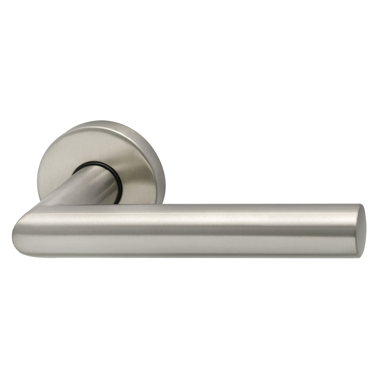 Elegantna ključavnica za vrata GEHRUNG z rozeto, izdelana iz visokokakovostnega nerjavečega jekla v mat izvedbi. Ta moderna ključavnica bo zagotovo popestrila videz vaših vrat in dodala pridih elegance vašemu domu.