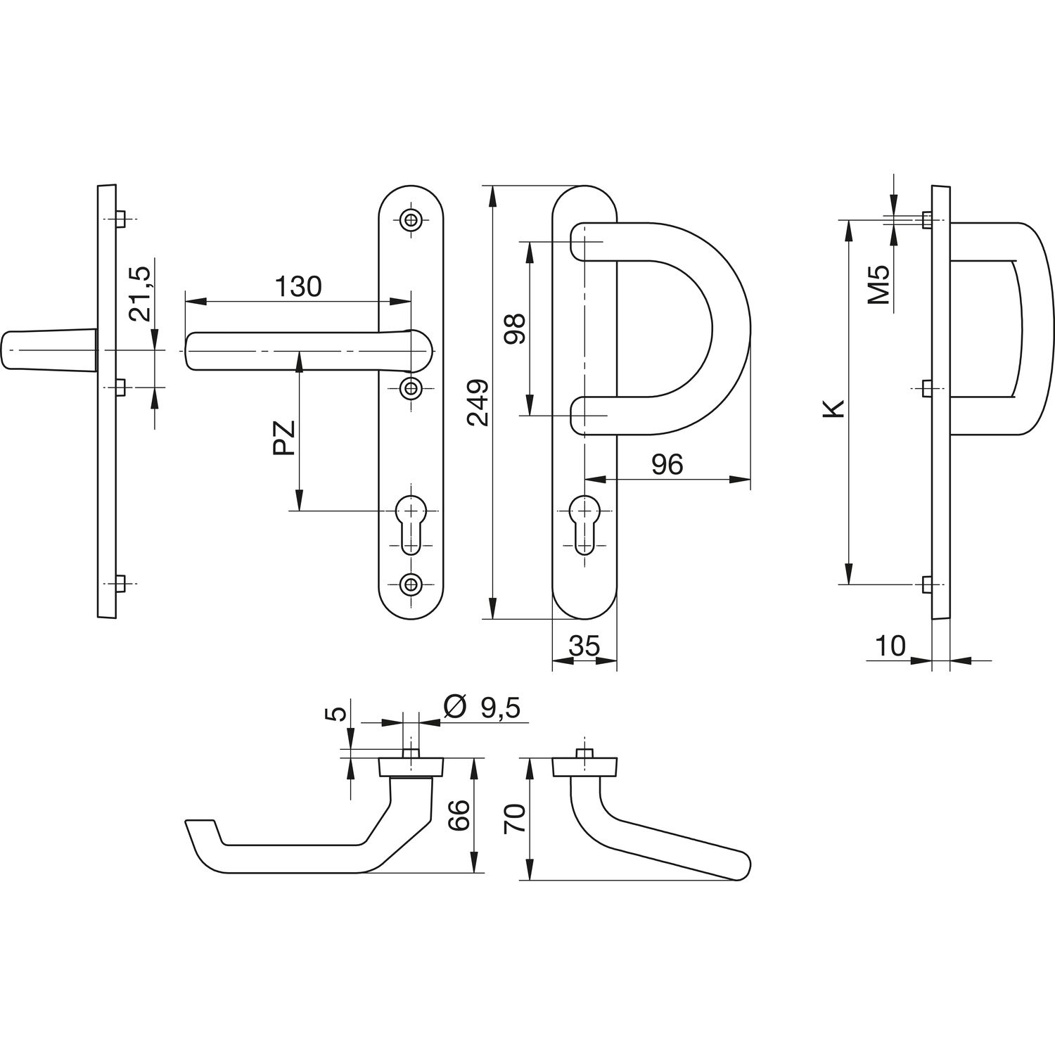Ključavnica za vrata-ročaj 35/1200 P F z vzmetjo, FKS