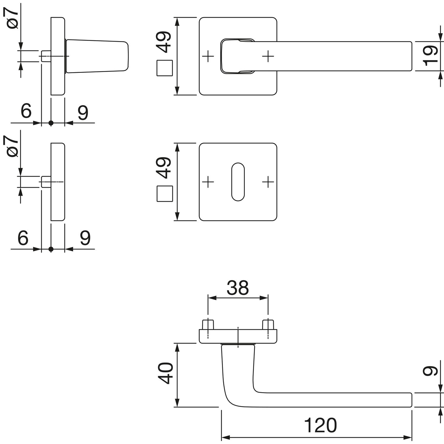 • Rozeta: 49 x 49 x 9 mm.
