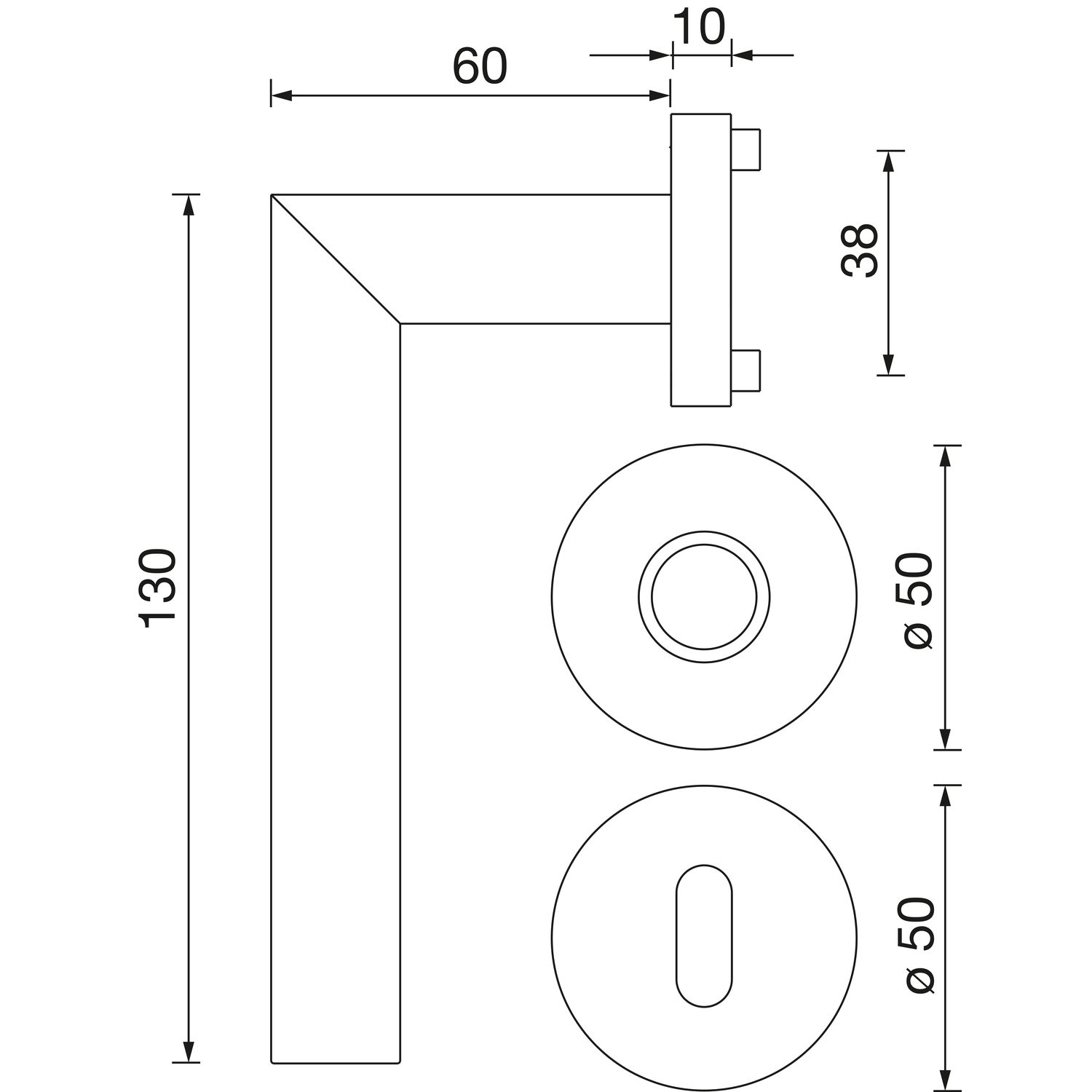 - ✓ Rozeta: Okrogla rozeta s premerom ø 50 x 10 mm