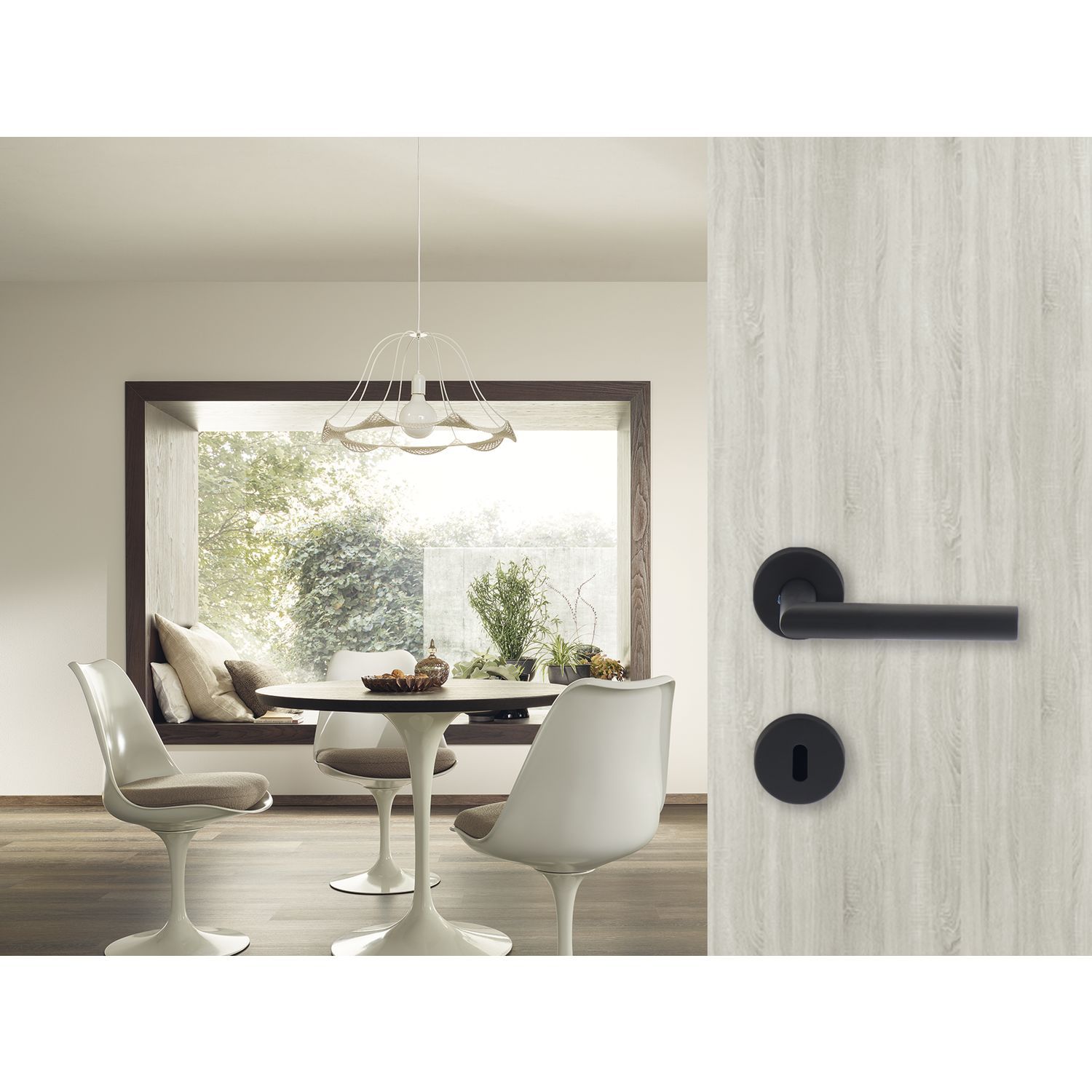Elegantna in moderna ključavnica za vrata GEHRUNG italijanskega proizvajalca MARCHESI. Odlikuje jo okrogla rozeta in črna mat površina, ki se odlično poda v vsak sodoben interier.