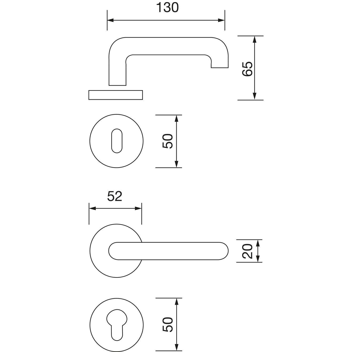 - Rozeta: ø 52 x 10 mm