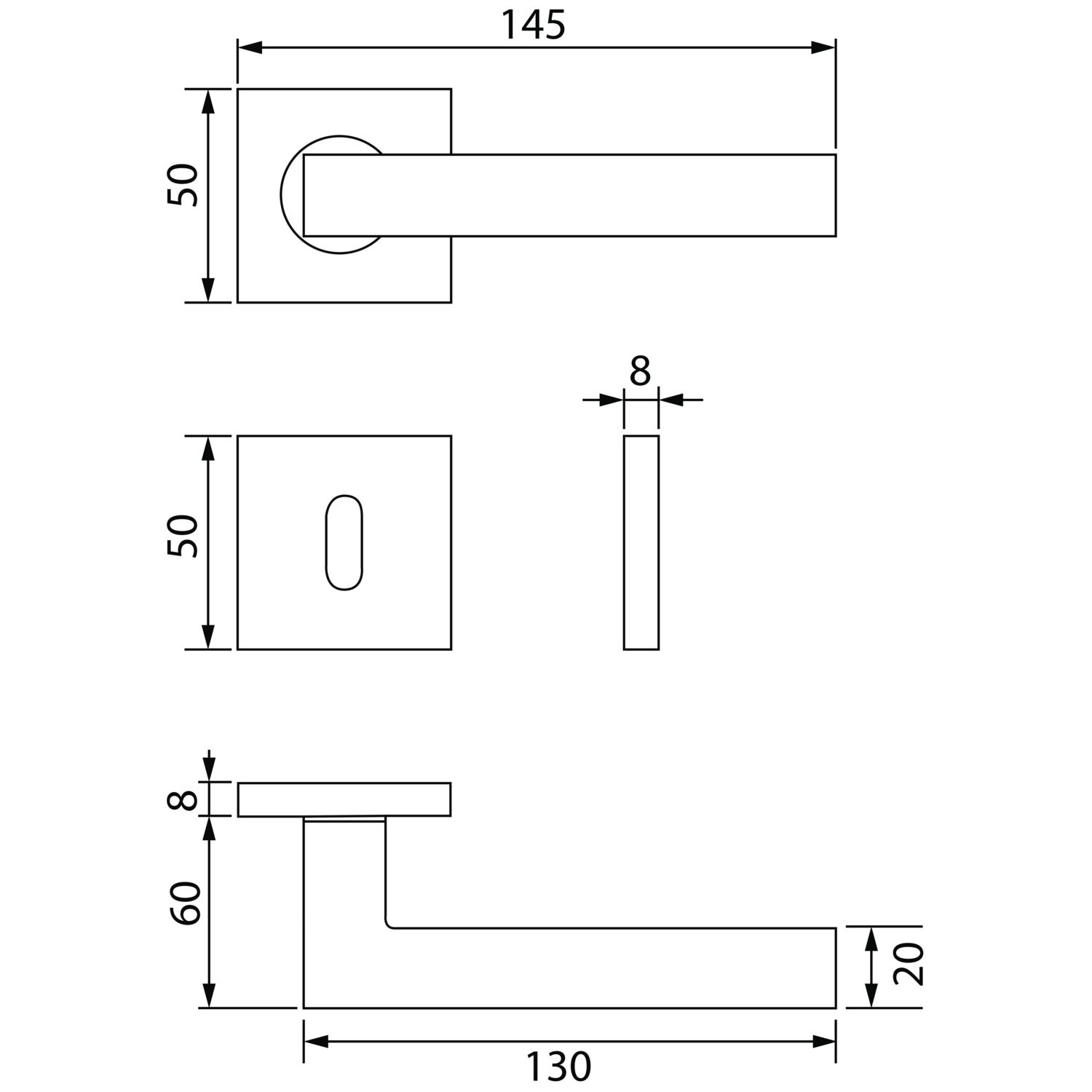 - Dimenzije rozete: 50 x 50 x 8 mm