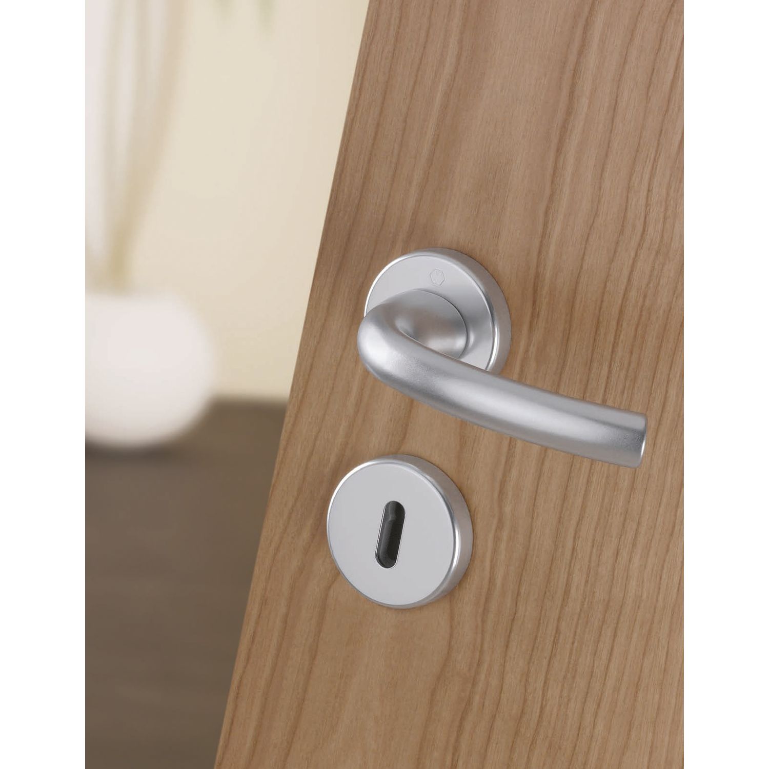 Elegantne ključavnice za vrata TÔKYÔ HOPPE z rozeto, primerne za standardna notranja vrata debeline 38-42 mm. Izdelane iz kakovostnega aluminija v srebrni eloksirani barvi, ki se odlično poda v vsak moderni dom ali pisarno.