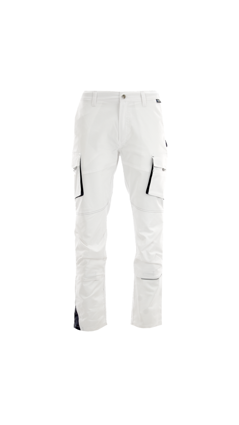 Sara Workwear KING FLEX delovne hlače – izdržljive hlače s elastičnom tkaninom, regulacijom struka i reflektirajućim elementima. Multifunkcionalni džepovi i ojačani šavovi čine ih idealnima za svakodnevni rad.