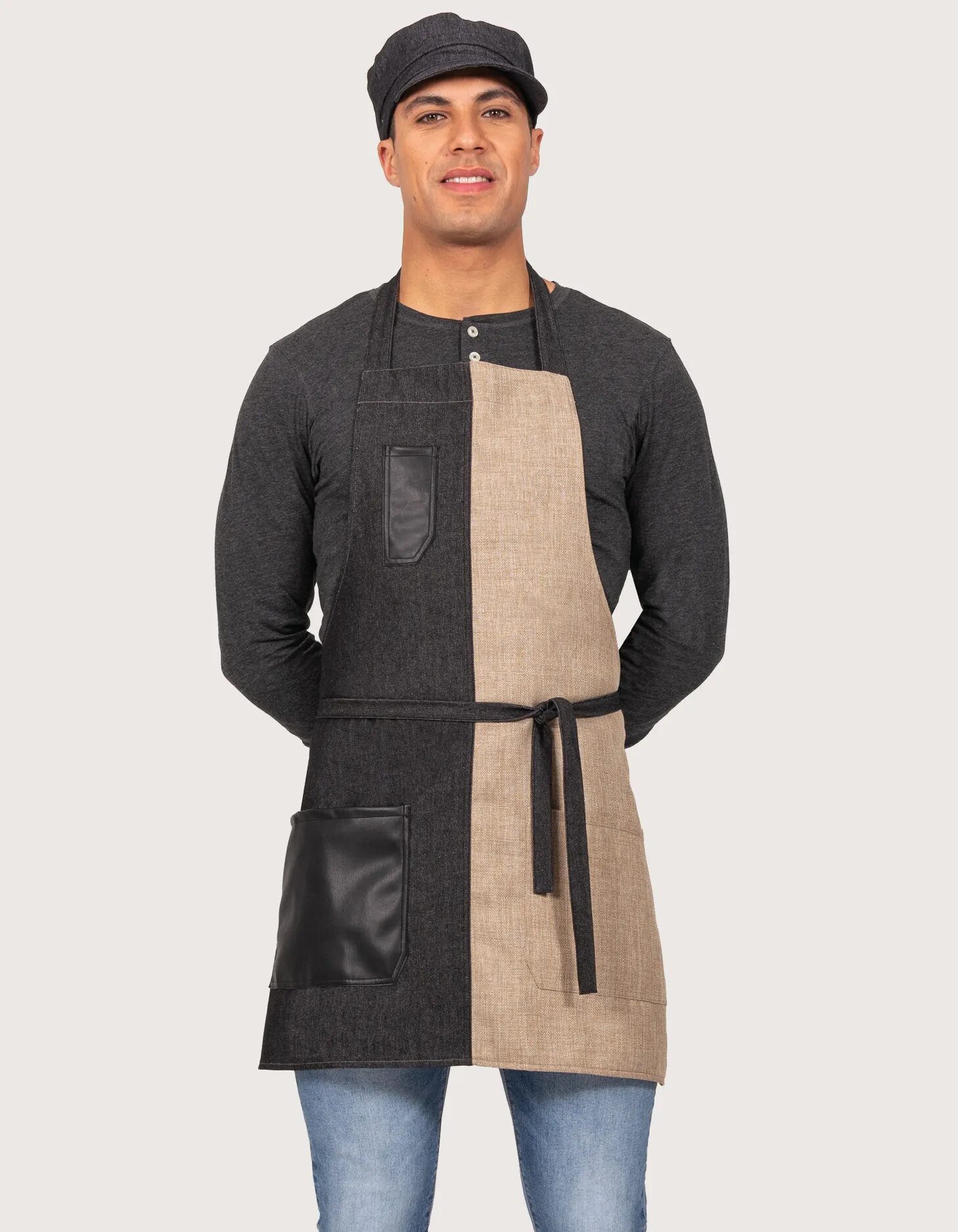 Toma GONDAL – Ugostiteljska pregača od denima s kožnim džepovima